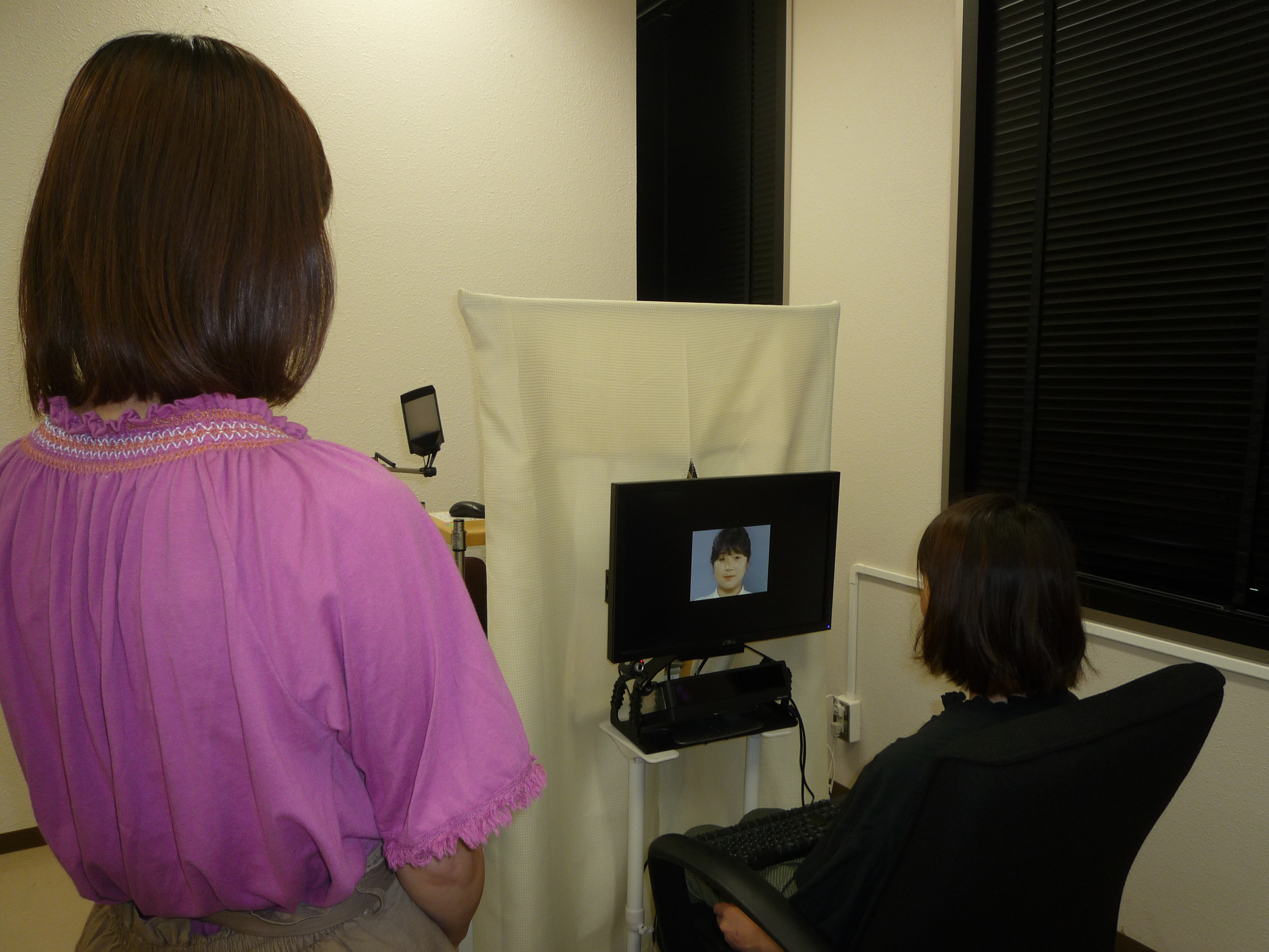 音声知覚の課題を行っている間に、視線の計測を行っています。