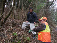 2018年12月8日に開催されたシンポジウムの翌日、発表者を含むシンポジウム関係者15名はレンタカー3台に分乗し、2時間半をかけて、熊本県球磨郡多良木町を訪れました。槻木の山中で猟友会の方の狩猟に同行させてもらい、町役場・猟友会・料理屋さんが共催された「多良木町ジビエシンポジウム」にも参加させてもらいました。シカ2頭の捕獲過程を見学し、猟師やそのご家族などと歓談することで、現代日本における狩猟とジビエについて多くのことを学ぶことができました。
